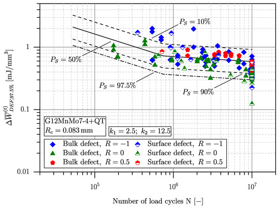However, as most fatigue studies reported in the literature focus on the assessment of notched components, the application of elastic–plastic approximation methods to arbitrarily shaped casting defects is a promising field of research. By evaluating the elastic–plastic stresses and strains induced by the complex geometry of such imperfections, the corresponding total strain energy density could be derived as given in Figure 2, considering local plasticity effects such as mean stress relaxation. Such elastic–plastic approximation methods significantly reduce computational effort and therefore feature a rapid fatigue design of defect-afflicted cast steel components.