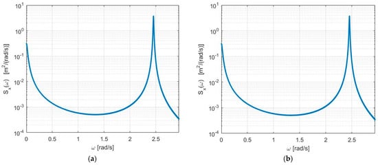 By applying the Laplace transform to the equations of motion stated in Equation (5) or Equation (11), and introducing a change in variable from time t (s) to frequency ω (rad/s), we can evaluate the transfer function H ω in the frequency domain. After performing some algebraic manipulations, the transfer function H ω was defined as follows: