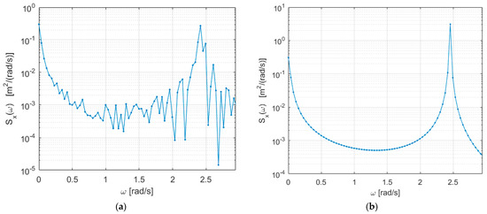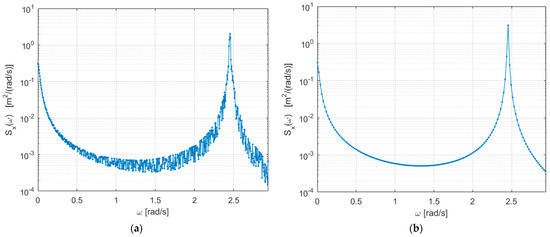 Figure 8. Response PSD for a large number of samples: (a) using time response; (b) using direct frequency method.