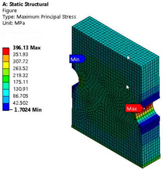 The employment of axes of symmetry was a judicious choice that significantly streamlined the analysis process while maintaining accuracy in places where symmetry conditions held. The decision was based on the geometric characteristics and loading conditions of the rectangular plate specimen, and steps were taken to ensure the validity of symmetry assumptions through thorough inspection and verification. This approach allowed efficient analysis of and valuable insights into the stress distribution and fatigue life in the presence of notches.