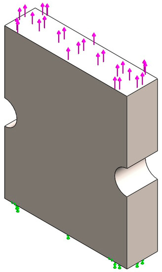 The decision to implement axes of symmetry was informed by the geometry of the rectangular plate specimen and the nature of the loading conditions. The plate’s geometry exhibited inherent symmetry due to the presence of opposite semi-circular notches on either side. Furthermore, the loading conditions were designed to maintain symmetry.