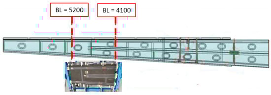 The test article used in this research is representative of a 1.2 m-long segment of the wing of the Piaggio P180 aircraft, as depicted in Figure 4. The letters B and L refer to conventional indications for determining the positions of the wing section used in this investigation.