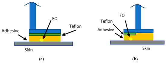 Schematic of optical fibres’ installation: installation scheme for the imposed defects extended for full length of the cap width (a); installation scheme for the imposed defects extended for just half of the cap width (b).