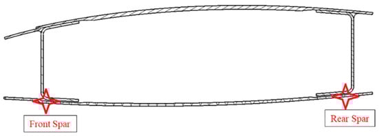 In the Z-axis direction, the two linear displacement transducers were installed on the tips of the front and rear spars, respectively (Figure 11), to prevent possible instability during the tests’ loading phases.
