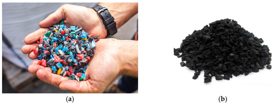 - Alyousef, R.; Ahmad, W.; Ahmad, A.; Aslam, F.; Joyklad, P.; Alabduljabbar, H. Potential use of recycled plastic and rubber aggregate in cementitious materials for sustainable construction: A review. J. Clean. Prod. 2021, 329, 129736. [Google Scholar] [CrossRef]