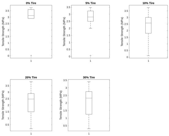 3.3.4. Tensile Strength Variation of Concrete Mixture with Plastic