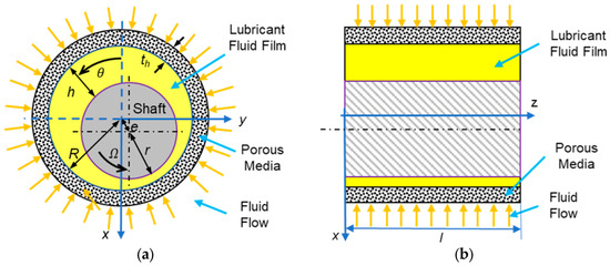A schematic of a porous gas journal bearing: (a) front view and (b) lateral view.