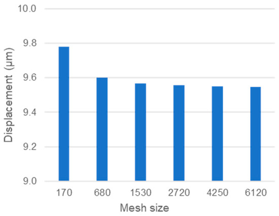 Sensitivity analysis of mesh size. Supply pressure 3.7 bar, clearance 30 µm, load applied 15 N.