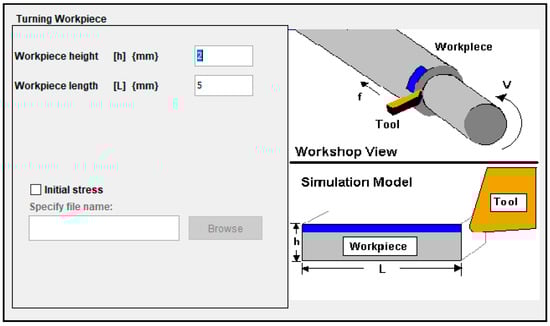 Figure 2 depicts a turning simulation interface that enables the user to input workpiece dimensions and simulate the machining process. It also enables the modification of initial stress settings through file inputs. The study examined the thermal and mechanical effects of cutting processes, assuming a stress-free initial state for accurate material behaviour representation. The setup provides a visual representation of the turning process for further evaluation.