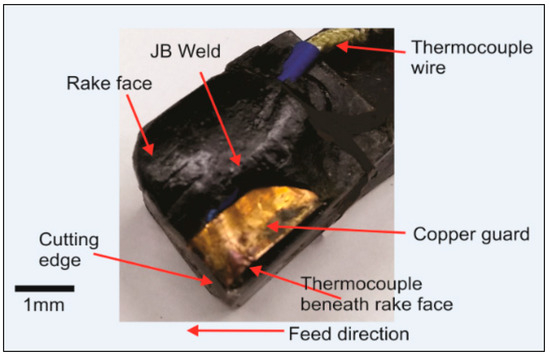 Measuring cutting temperature presents significant challenges in metal-cutting operations. The temperature at the tool–chip interface during metal cutting is complex, making it challenging to establish a measurement setup. Therefore, the accurate measurement of temperature remains a significant challenge. In this study, an infrared thermometer and embedded thermocouple technique was used to measure the cutting temperature (cutting edge temperature) as explained by Hoyne et al., 2015 [44] in their research work.
