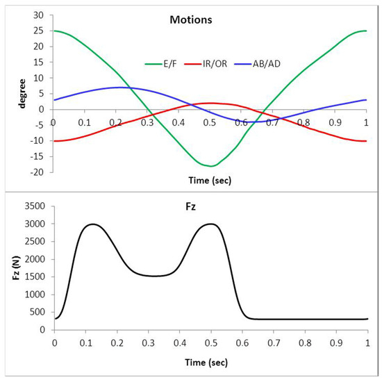 | Solver | Load steps per gait cycle | 50 | ISO 14242-1 temporal resolution |