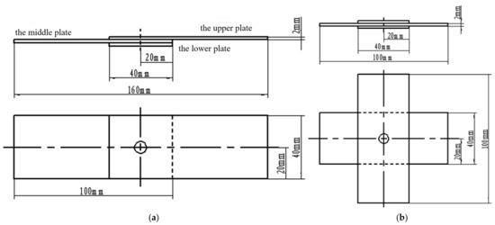 Geometry of the specimen. (a) Shear specimen dimensions and (b) cross-stretching specimen dimensions.