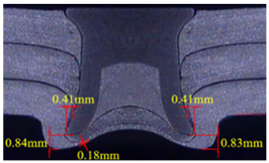 During the cross-stretch failure process of the T3 joint, the stretched middle plate is equivalent to stretching the upper and middle layers of the upper and middle layers of the plate layer, while the stretched lower plate is only stretched with a thickness of 2 mm. It is easier to produce deformation through the yield deformation of the lower plate with a thickness of 2 mm, while the same is true of the upper and middle layers of 4 mm. Therefore, when the tensile force is the same, the lower plate is more likely to produce deformation, causing deformation and expansion at the riveting, thereby pulling out the rivet. Therefore, the tensile strength of the joint cross is affected by the lower plate strength and the self-locking strength of the rivet and the lower plate. At the same time, by comparing the cross-tensile strength of the T2 joint, we can see that the tensile strength of the two joints is related to the lower plate strength and to the self-locking strength of the rivet and the lower plate. Meanwhile, for the lower plate strength of the T2 and T3 joints, the self-locking strength of the rivet and the lower plate are the same and only the plate layer combination method is different. This means that the cross-tensile strength of the two joints is similar.