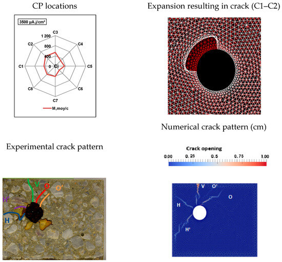 - Zeng, B.; Wang, Y.; Gong, F.; Maekawa, K. Corrosion-Induced cracking pattern analysis of RC beam under sustained load considering the poromechanical characteristics of corrosion products. Buildings 2022, 12, 2256. [Google Scholar] [CrossRef]
