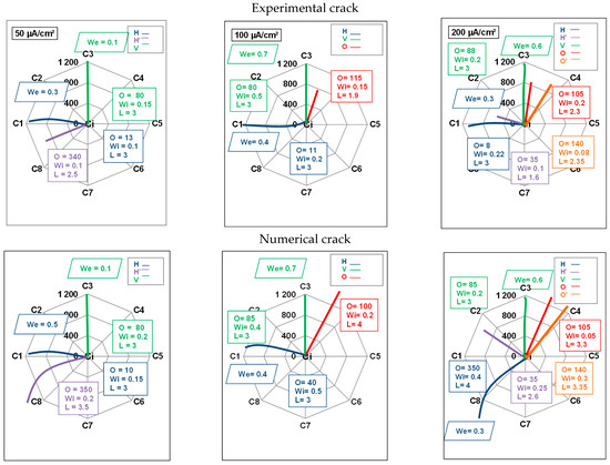 - At 100 µA/cm2, the slice showed three differently oriented cracks: H, V, and O.