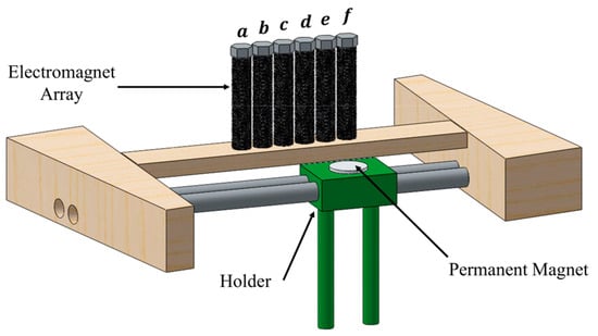 The schematic of the developed electromagnet array and permanent magnet holder in the control subsystem.