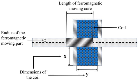 where x, y, and z represent the cross-sectional coil dimensions, and ρ is the copper density. Figure 6 illustrates the cross-sectional representation of the electromagnetic coil system.