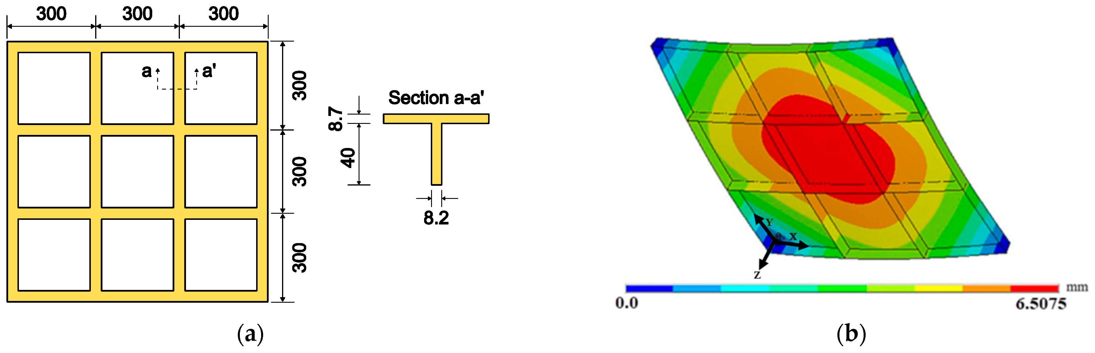 - Gan, L.; Zong, Z.; Lin, J.; Chen, Y.; Xia, M.; Chen, L. Influence of U-Shaped Stiffeners on the Blast-Resistance Performance of Steel Plates. J. Constr. Steel Res. 2022, 188, 107046. [Google Scholar] [CrossRef]