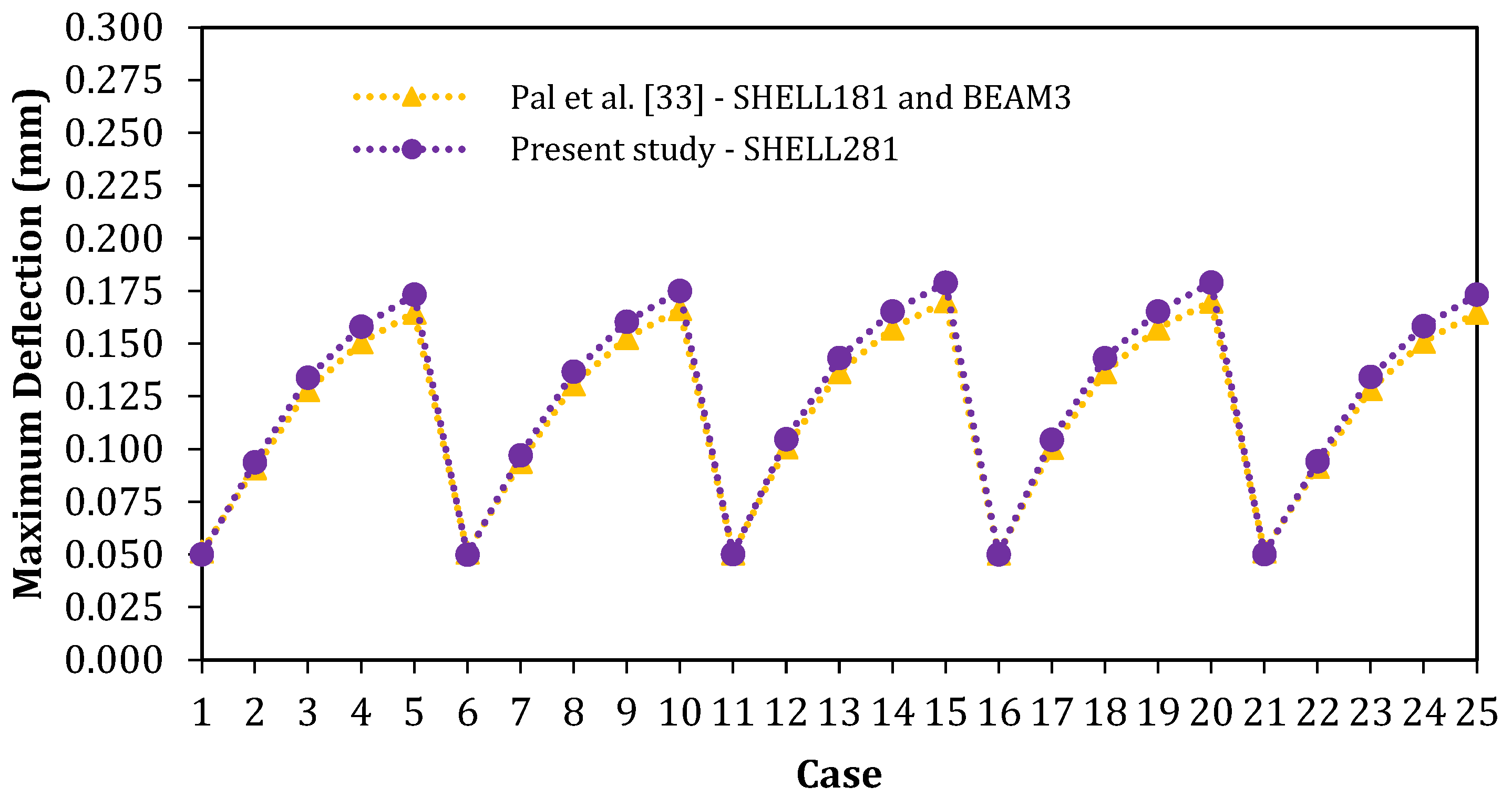 - ANSYS, Inc. Element Reference—Release 2021 R2. Southpointe, 2600 ANSYS Drive; ANSYS, Inc.: Canonsburg, PA, USA, 2021; Available online: https://pt.scribd.com/document/665578059/Ansys-Mechanical-APDL-Theory-Reference (accessed on 12 October 2025).