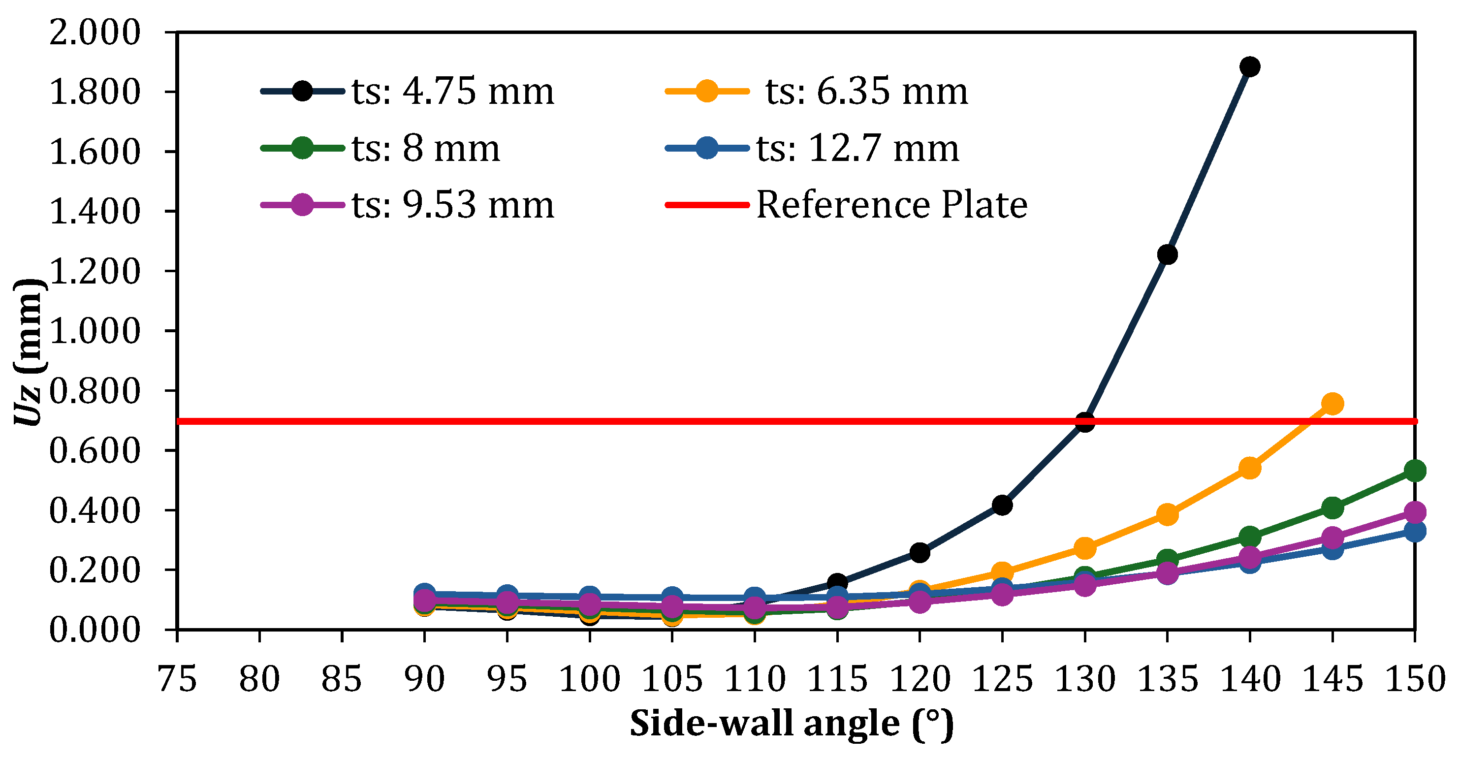 - A significant increase in the mechanical resistance of steel plates was obtained by converting 30% of their volume into stiffeners. In this study, the improvement corresponded to a 93.72% reduction in the maximum deflections.