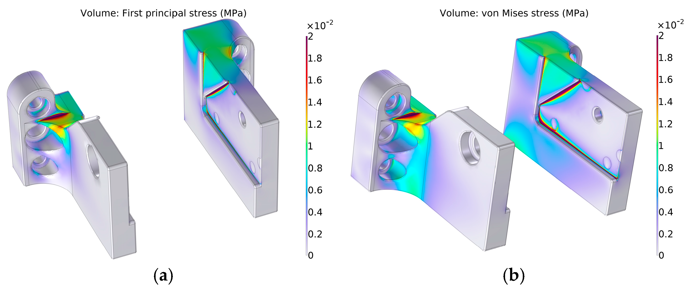 - Structural Mechanics Module User’s Guide; COMSOL Multiphysics® v. 6.3; COMSOL AB: Stockholm, Sweden, 2024; pp. 65, 248, 274–288.