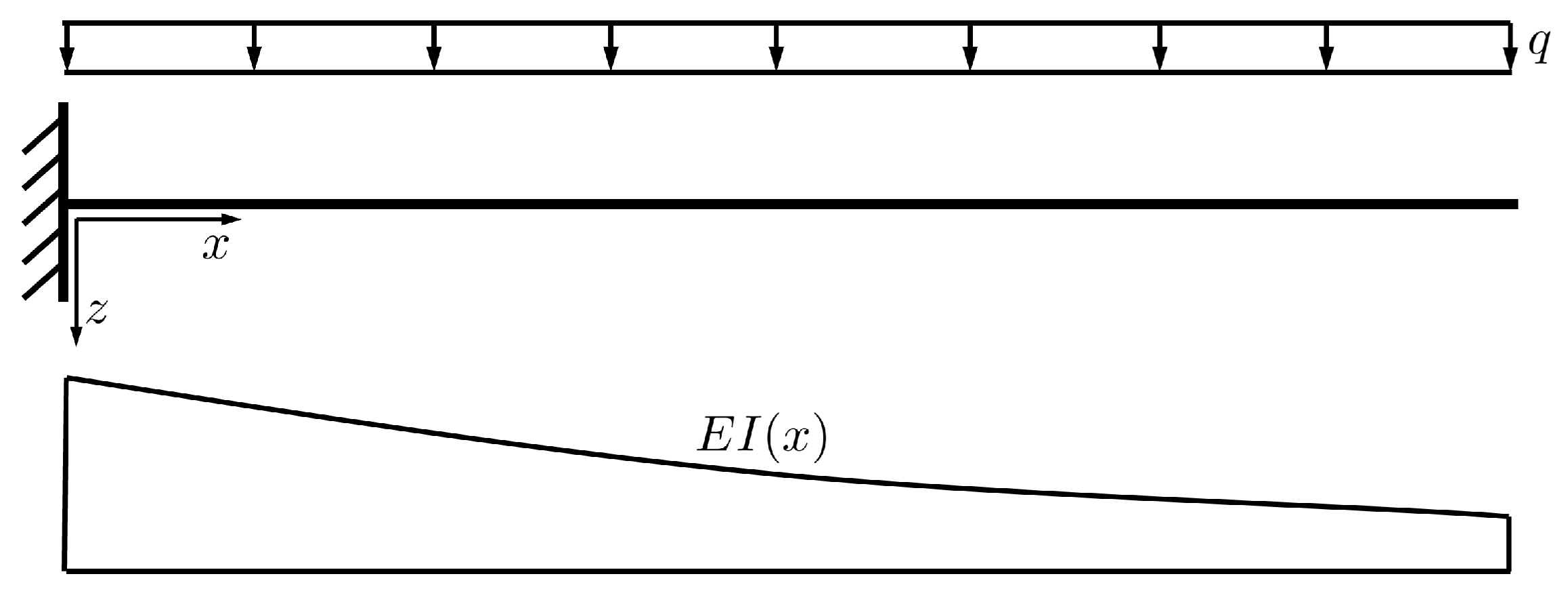 Cantilever beam with constant bending stiffness subjected to a quadratic load .