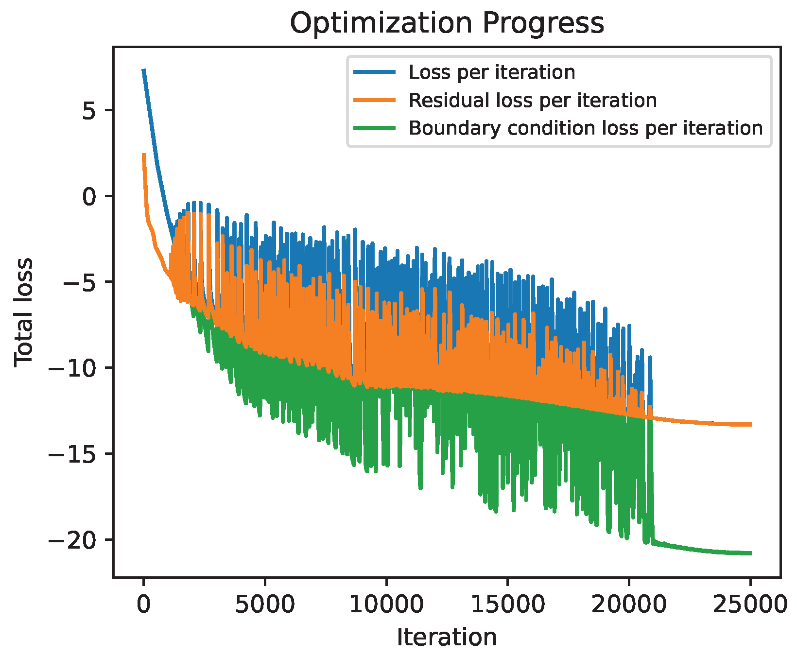 Optimization convergence history of the logarithmic total loss for the double-hinged frame.