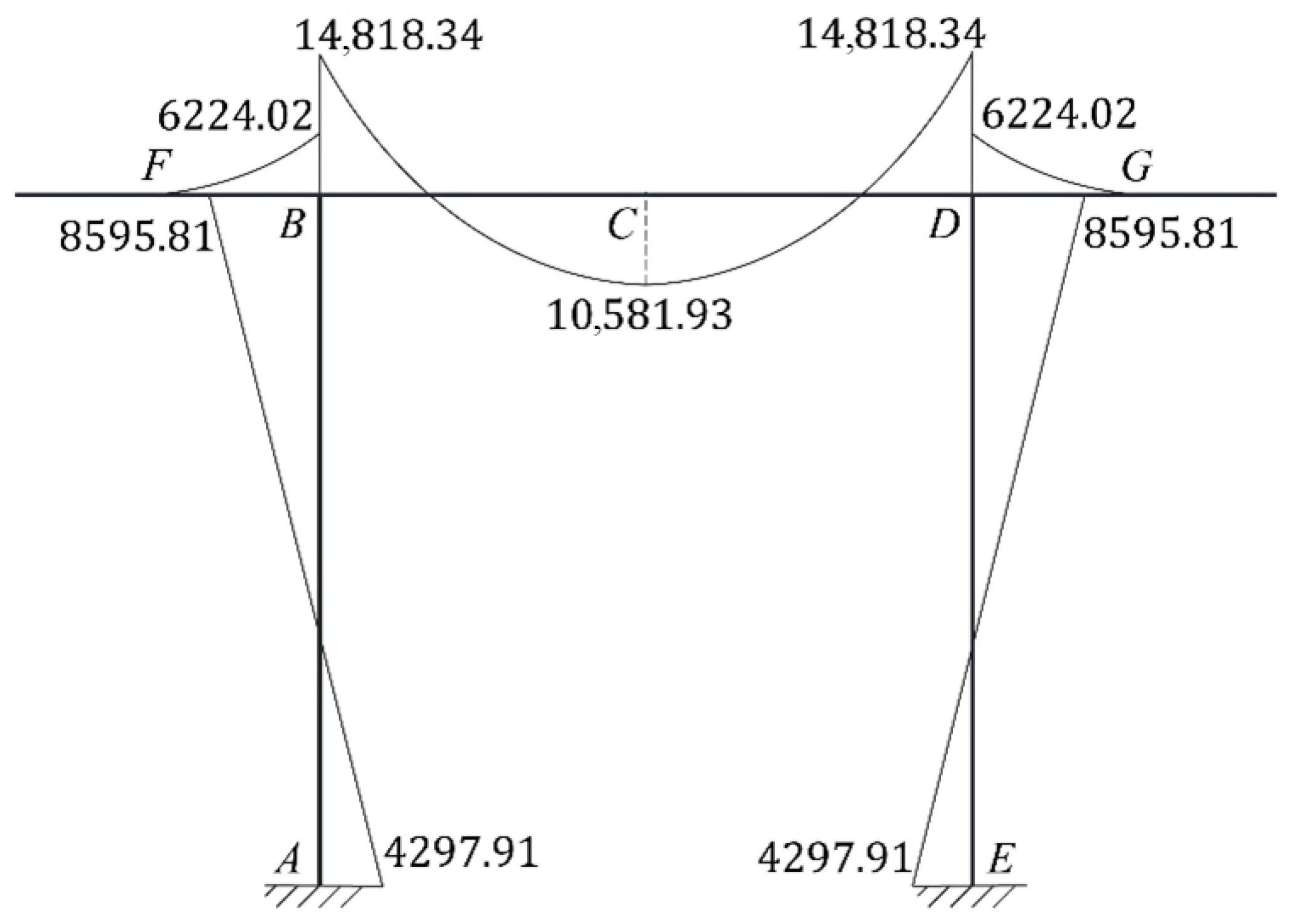 2.4. Structural Bending Moment Calculation and Diagram