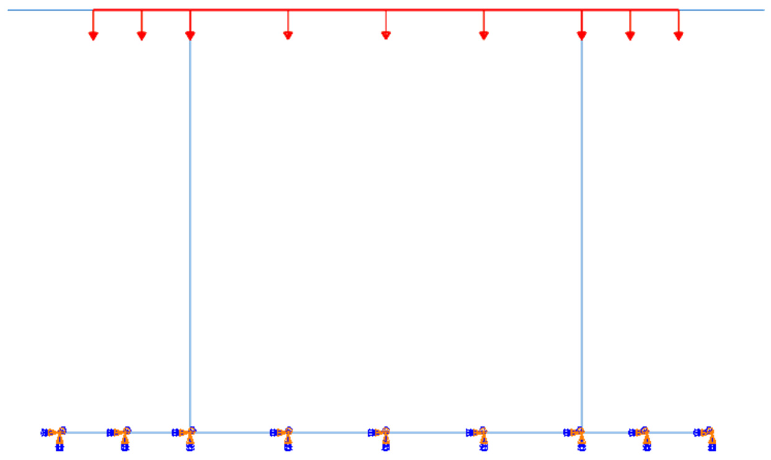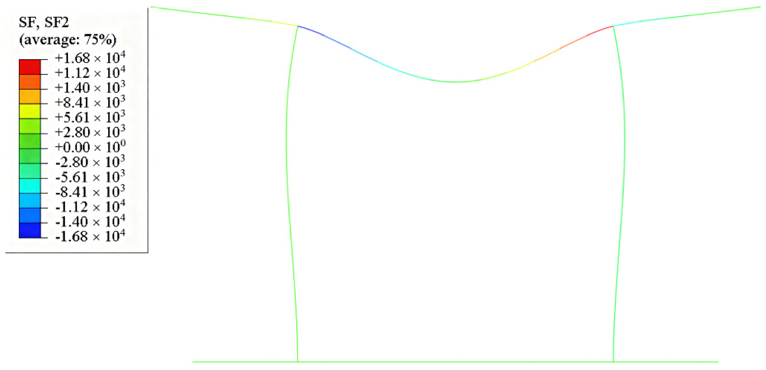 - Verification of Theory-Simulation Consistency: A two-dimensional Abaqus FE model verified the analytical framework. The comparison shows a bending moment error of 1.75% at the midpoint of the top slab (10,400 vs. 10,582 kN·m), a peak shear force error of 0.67% (16,822 vs. 16,934 kN), and a deformation error of less than 0.5% (7.497 × 10−5 m vs. 7.5 × 10−5 m). These results confirm the reliability of the symbolic modeling method in practical engineering applications. The simulation model strictly adopts the theoretical calculation parameters from the engineering case (web clear spacing 6 m, top slab length 11.6 m, etc.), with boundary conditions and loading consistent with the theoretical model, ensuring that the validation outcomes provide valuable guidance for engineering practice.