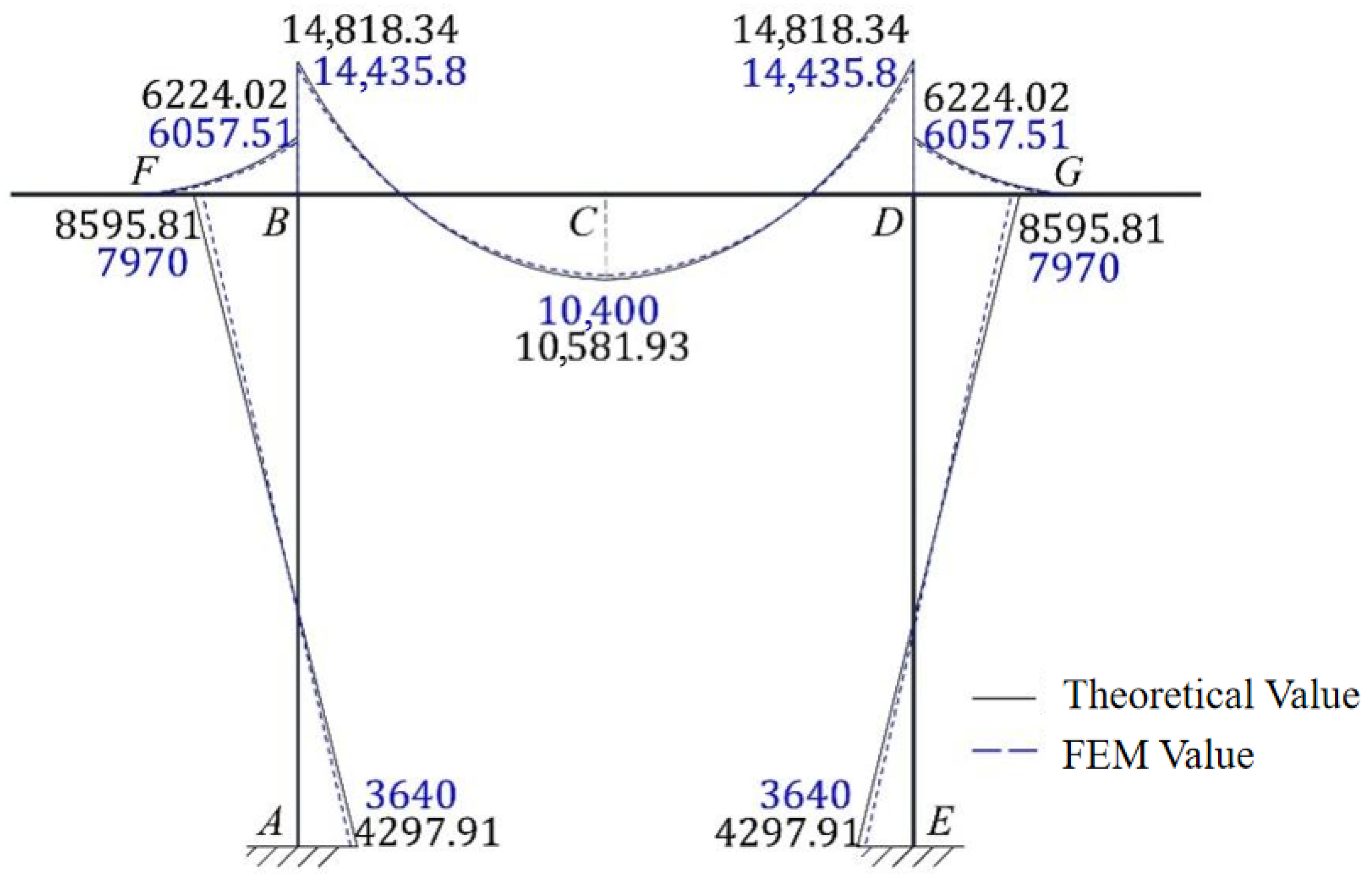 | Position | Theoretical Value (kN·m) | FEM Value (kN·m) | Error |