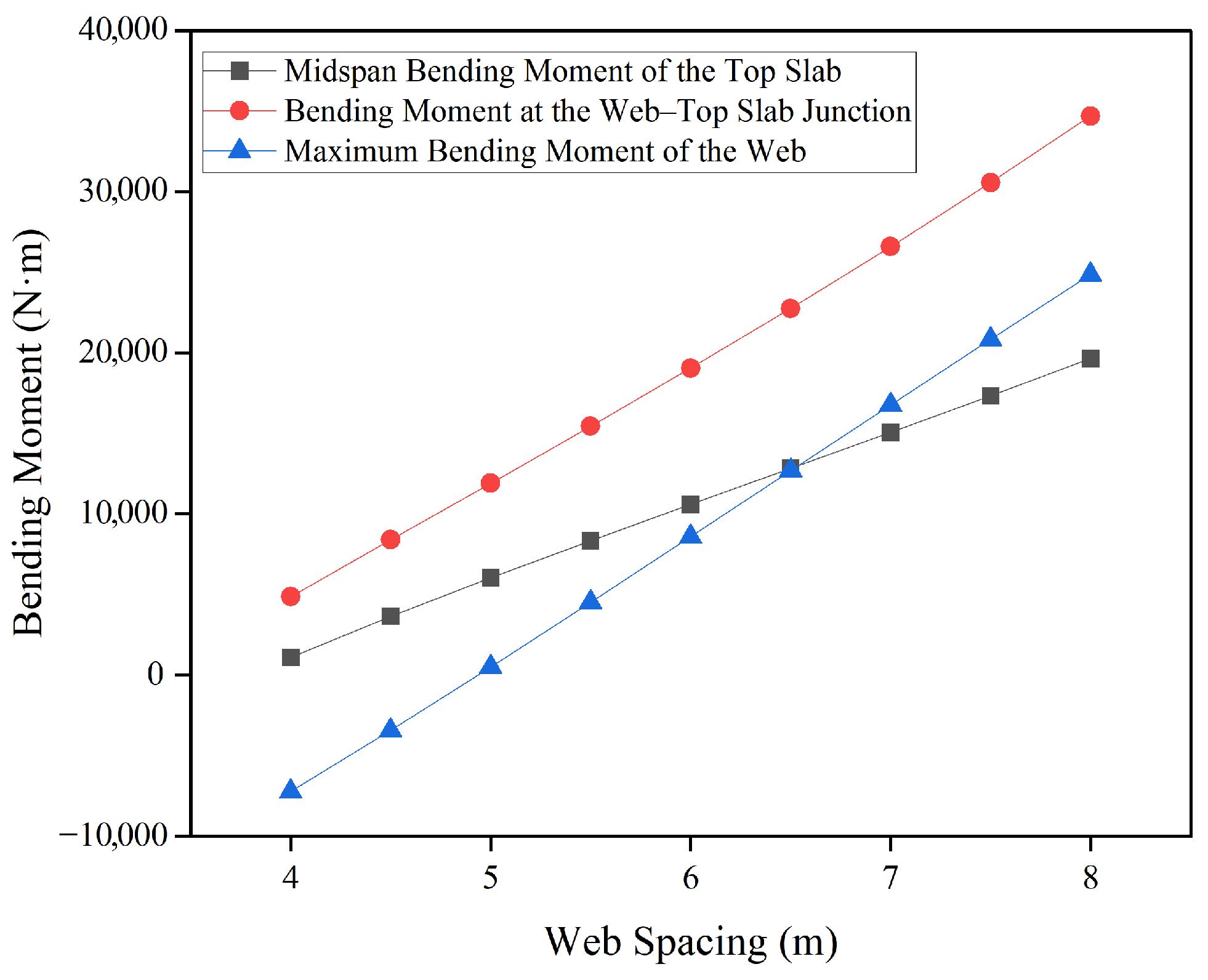- A symbolic modeling-based static analysis framework for a box-type subgrade structure was constructed. By simplifying the structure into a planar frame model and selecting key parameters such as web spacing (b), web height (h), and load (q) as symbolic variables, a universal symbolic solution system was established. Based on the structural symmetry, the displacement method was applied to the simplified half-structure to analyze bending moments, shear forces, and deformations resulting in symbolic expressions. The analysis shows that the actual internal forces under train loads exhibit clear regularity and consistency. This study focuses on the static response and parameter optimization of the box-type subgrade structure. Subsequent work will incorporate dynamic response analysis to further validate the long-term service performance of the optimized structure.
