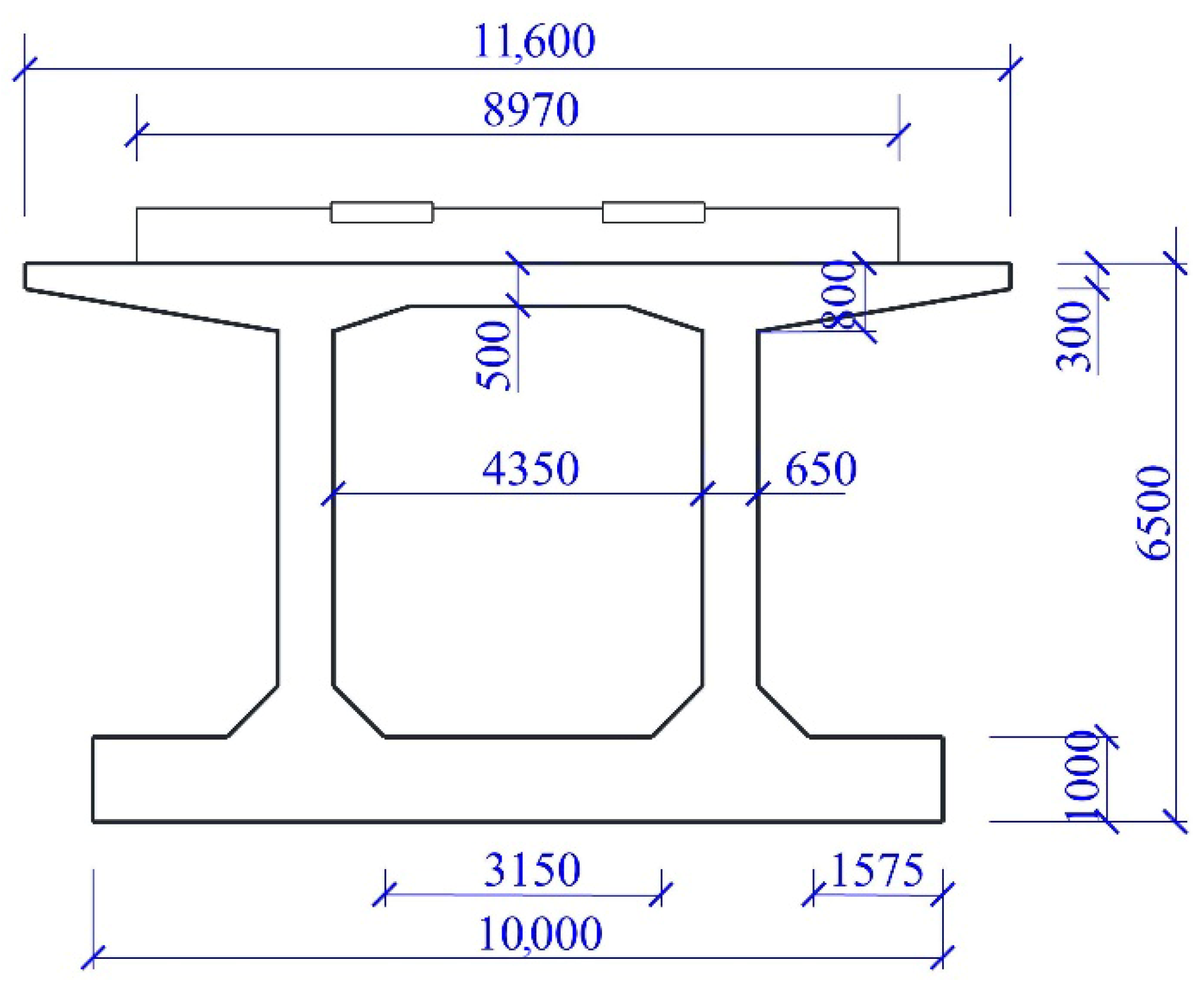 - Cross-sectional dimensionFor the moment of inertia of members in the simplified two-dimensional box-type subgrade structure, the dimensions are determined based on the actual engineering configuration. The web members on the left and right sides are modeled as rectangular sections with a width of 0.1 m and a height of 0.65 m, while the top slab members are modeled as rectangular sections with a width of 0.1 m and a height of 0.5 m.