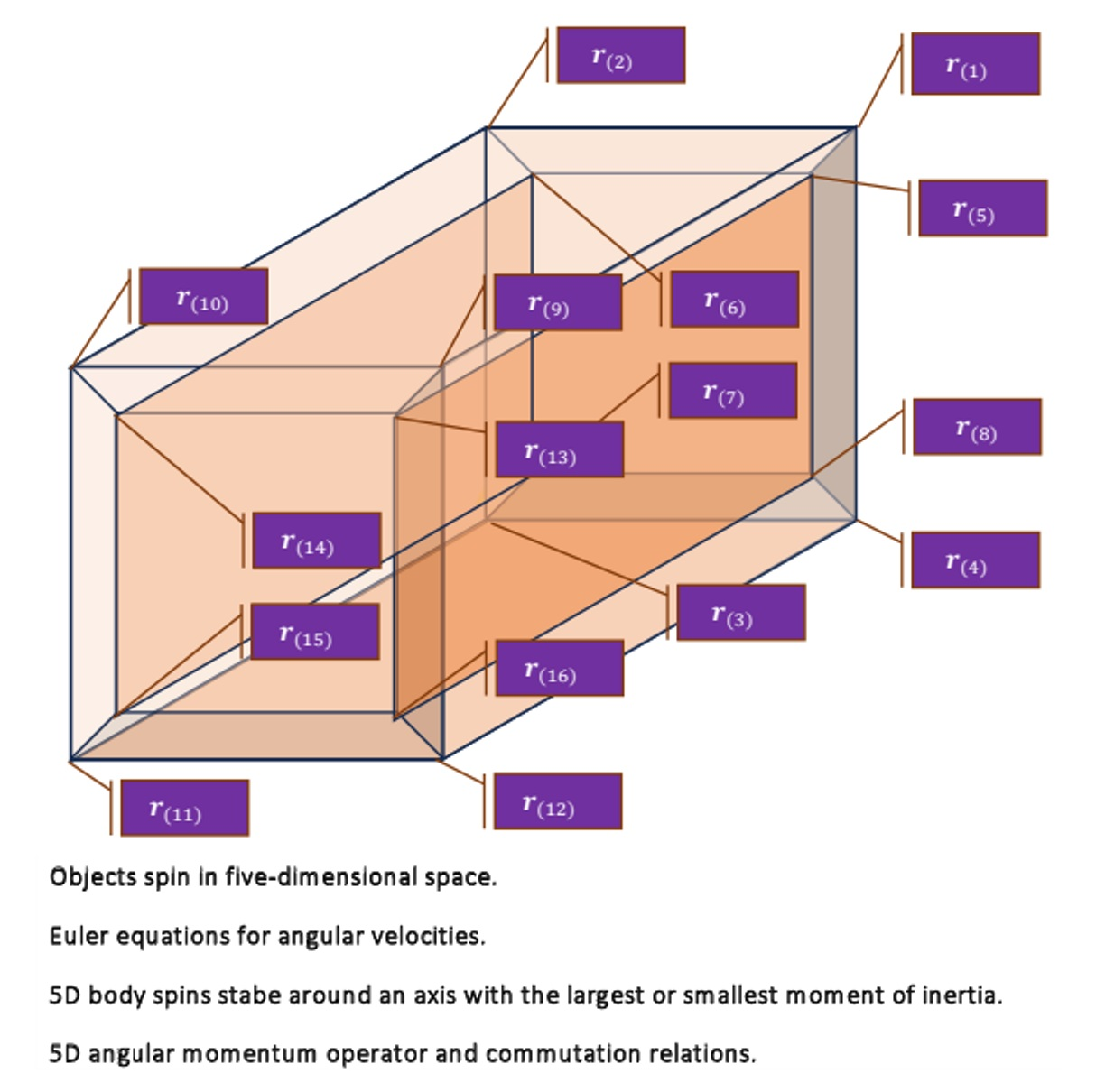be specifically the principal axis system. We use an orthonormal, time-invariant basis (also known as the Cartesian basis) in the five-dimensional Euclidean vector space. In 5D space, there are five basis vectors, which form a right-handed basis: