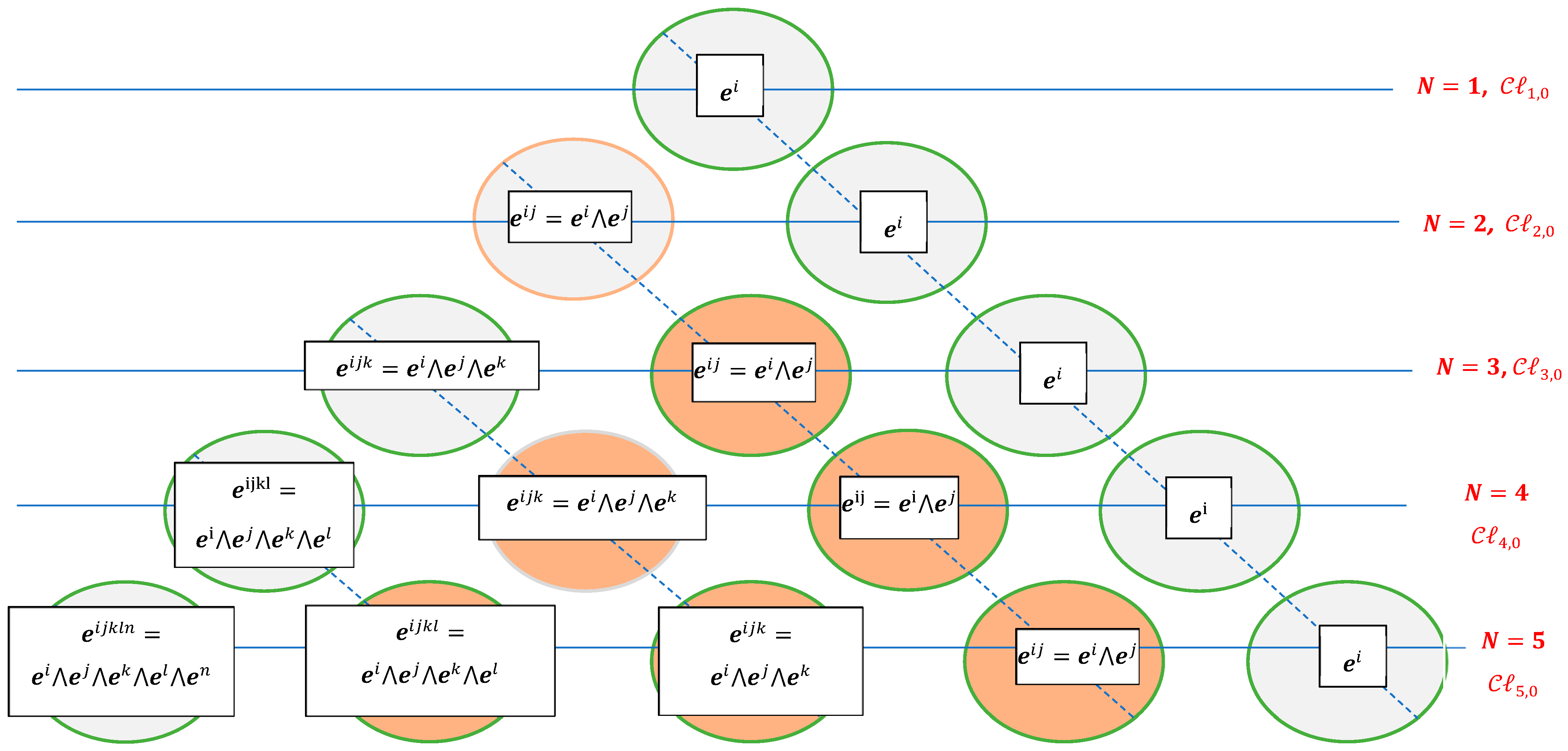 . These could be referred to as a scalar and a five-vector with a single component. The set of all basis vectors of the Clifford algebra