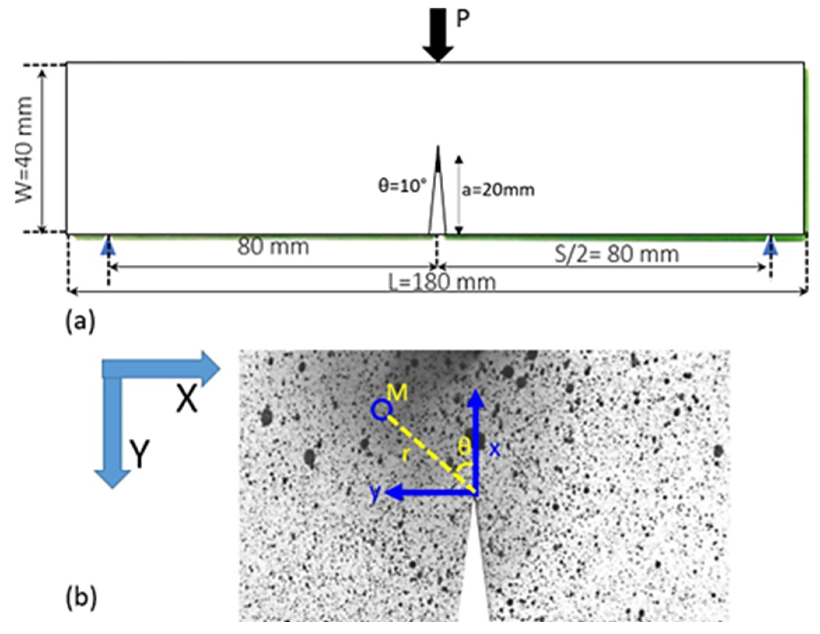 - Bahrami, B.; Ayatollahi, M.R.; Torabi, A.R. Application of digital image correlation method for determination of mixed mode stress intensity factors in sharp notches. Opt. Lasers Eng. 2020, 124, 105830. [Google Scholar] [CrossRef]