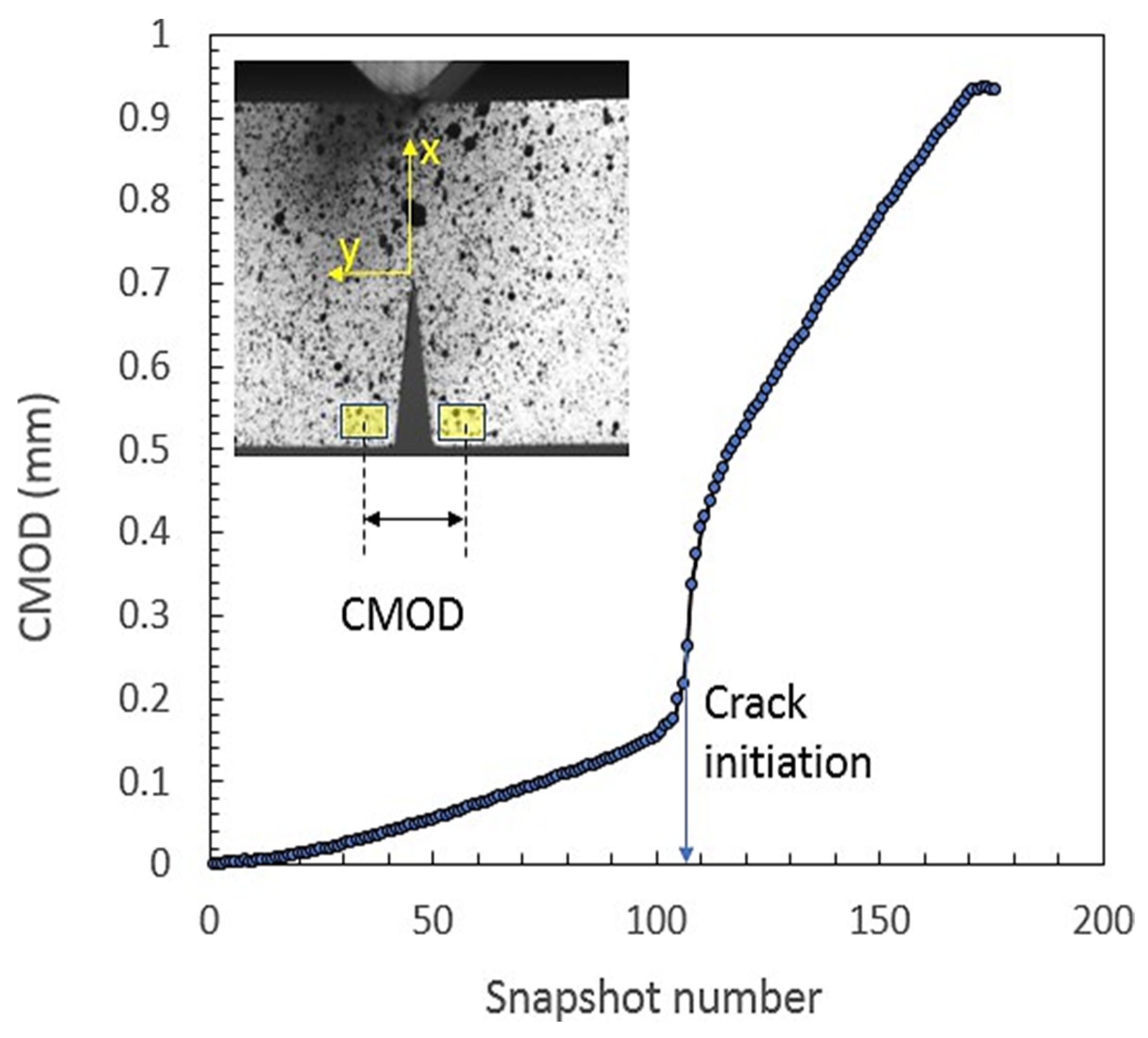 Figure 4 shows the evolution of the Crack Mouth Opening Displacement during the sample deformation. It is plotted with respect to the snapshot number