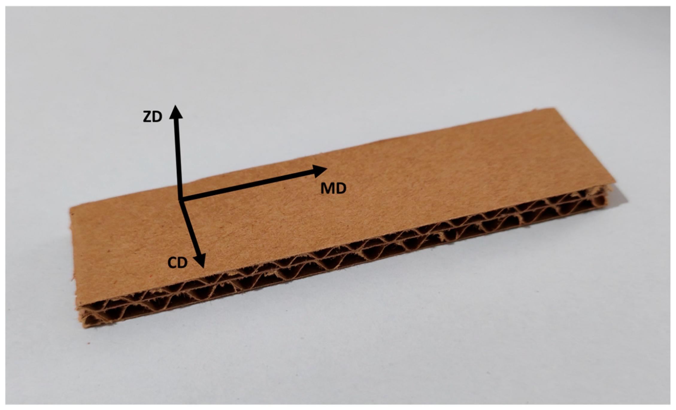 - Minh, D.P.T.; Tien, D.L.; Hung, N.Q. Experimental and Numerical Characterization of Mechanical Behavior for the Corrugated Cardboard. In Advances in Engineering Research and Application; Sattler, K.-U., Nguyen, D.C., Vu, N.P., Long, B.T., Puta, H., Eds.; Springer International Publishing: Cham, Switzerland, 2021; pp. 425–433. [Google Scholar] [CrossRef]