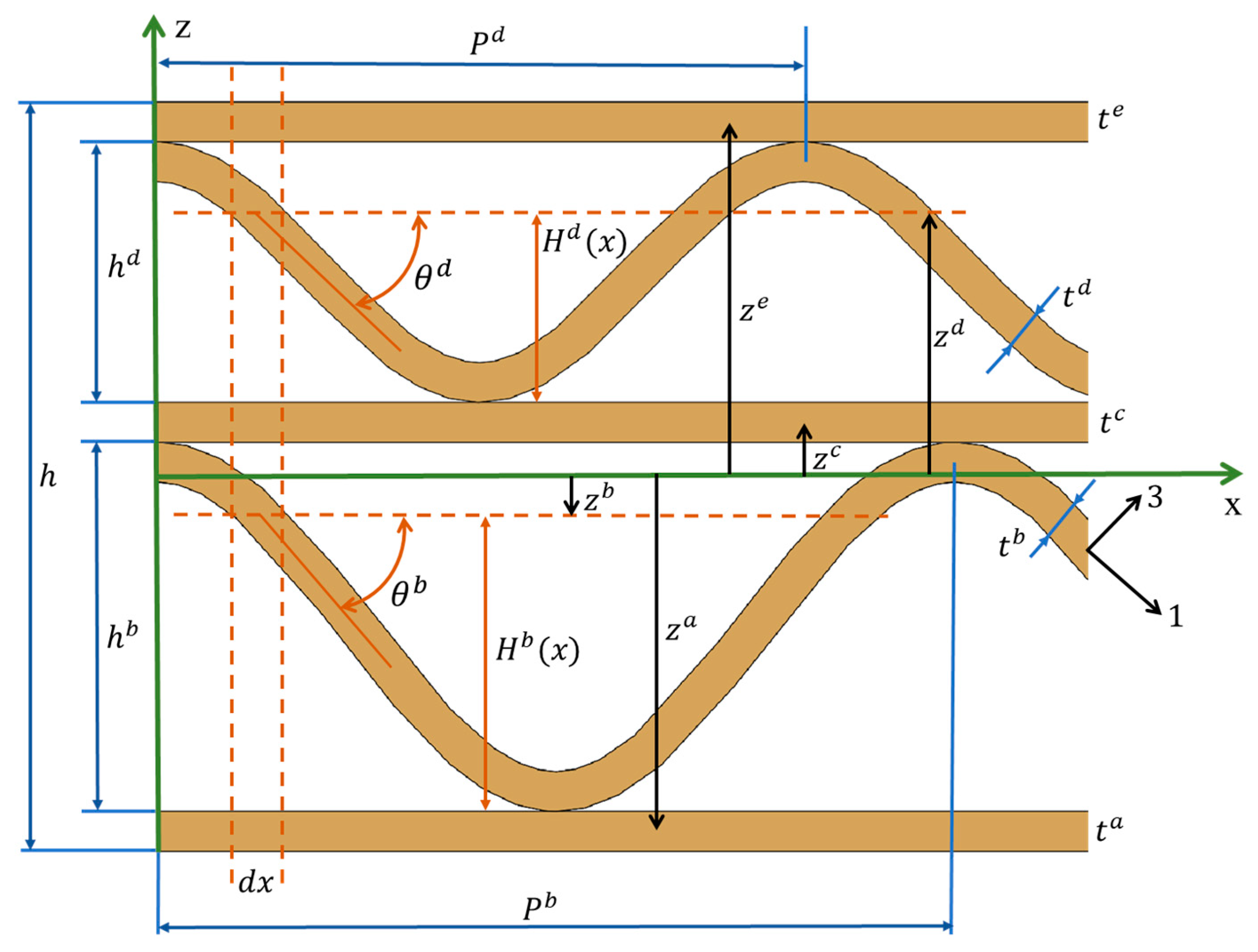- Minh, D.P.T.; Khoa, N.N. An analytic homogenization model in traction and bending for orthotropic composite plates with the type of double corrugated cardboard. Vietnam. J. Mech. 2016, 38, 41–50. [Google Scholar] [CrossRef]