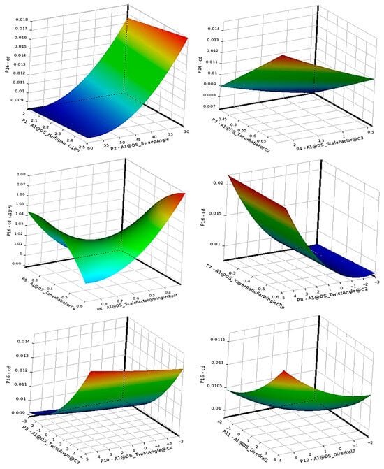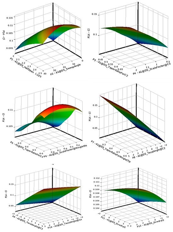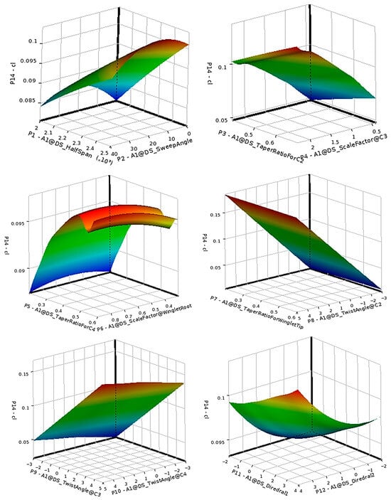 Within this context, surrogate-based optimization methods, particularly RSM and Kriging models, have emerged as powerful tools for aerodynamic design due to their balance between computational efficiency and predictive accuracy [27,28]. RSM-based approaches allow for the construction of smooth functional approximations of aerodynamic responses over multidimensional design spaces, enabling sensitivity analysis and optimization under nonlinear constraints. Combined with parametric CAD modeling and CFD simulation, RSM provides a flexible foundation for automated aerodynamic design frameworks applicable to both conventional and morphing configurations [29,30].