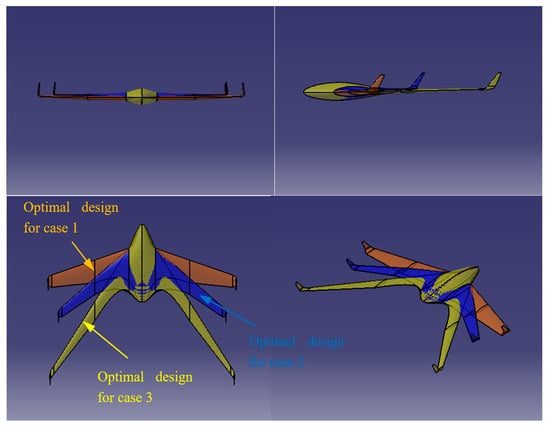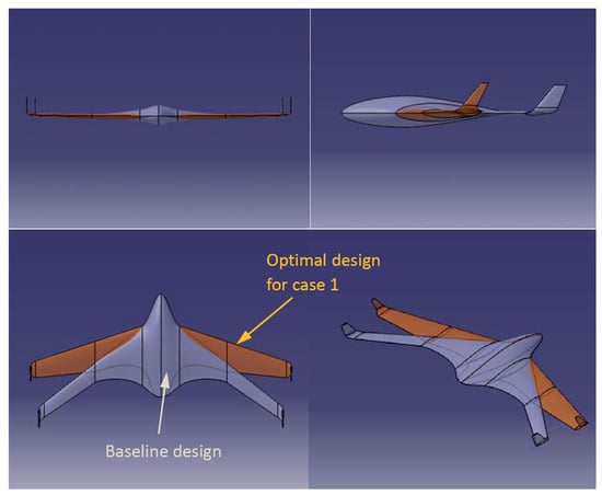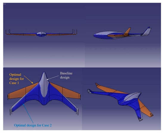 - Mader, C.; Martins, J.R.R.A. Optimal Flying Wings: A Numerical Optimization Study. In Proceedings of the 53rd AIAA/ASME/ASCE/AHS/ASC Structures, Structural Dynamics, and Materials Conference, Honolulu, HI, USA, 23–26 April 2012. AIAA Paper 2012-1758. [Google Scholar]