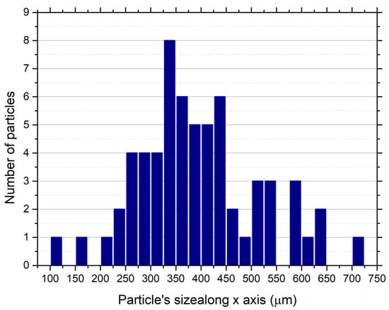 Figure 4. Size histogram of ice particles obtained from a series of interferograms: number of particles versus the x-axis particle’s size range.