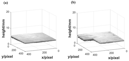 The height reconstruction of the plane: (a) using traditional Stoilov algorithm; (b) using improved Stoilov algorithm.