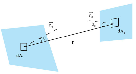 As for the radiation transfer, referring to two randomly oriented surfaces in Figure 2, the differential flux emitted from with radiance and received by is determined by: