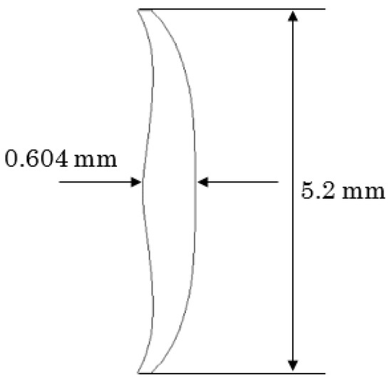 The designed IOL has an effective optical zone of 5.2 mm, a central thickness of 0.604 mm, and an edge thickness of 0.177 mm. The anterior and posterior surface parameters are shown in Table 3. The cross-section profile of the effective optical zone of the IOL is shown in Figure 1. This is obvious that both surfaces of the IOL are aspherical.