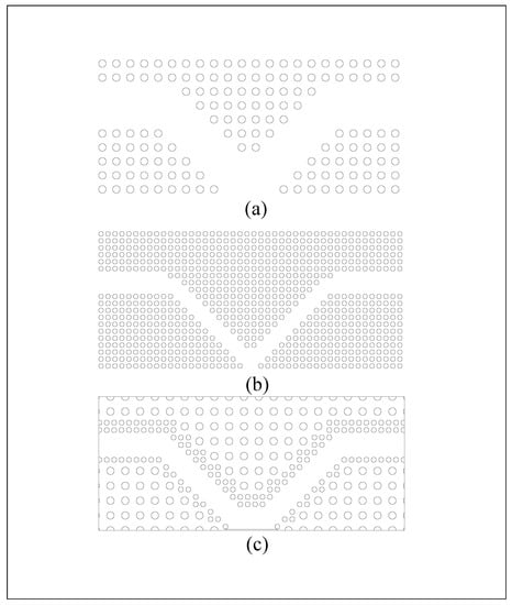 A 2D PhC waveguide structure is proposed for the surface region where light is directed and strikes the electronic component at a certain angle. Polymer material with a refractive index of 1.51 was utilized in the waveguide layer based on the characteristics of the electronic element at the common surface of the PhC structure with the electronic element [,]. Recently, similar refractive indices have been investigated in the numerical analysis of parabolic 2D couplers []. Likewise, a range of refractive indices can be used for optimal design.