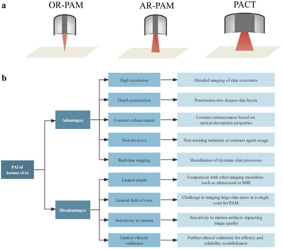 (a) Major implementation of PAI. (b) The advantages and disadvantages of PAI of human skin.