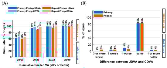 The primary outcomes were postoperative UDVA and CDVA, deviation from target refraction, the efficacy index, and safety index. Secondary outcomes were postoperative cylinder, and spherical equivalent.