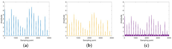 Figure 4b shows the waveform of the ideal received signal with delay. At the receiving end, we use the sampling rate of 1 Gsa/s to sample the received signal, and the sampled waveform is shown in