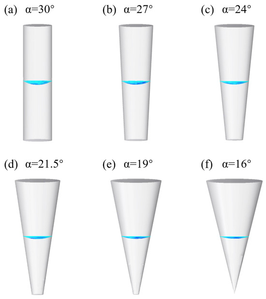 By setting different angles of contact angle, we finally get the cylindrical liquid rise model with α of 10°, 20°, 30°, 40°, as shown in Figure 2.