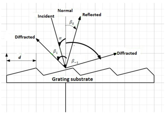 where m is an integer called the diffraction order, also known as spectral order, which, for a given wavelength , takes the values imposed by the constraint , corresponding to the feasible diffraction orders. The goal of the diffraction grating is to separate light beams within the available space into their wavelength components and direction. A measure of these wavelengths’ separation is known as dispersion, which can be spatial or angular.